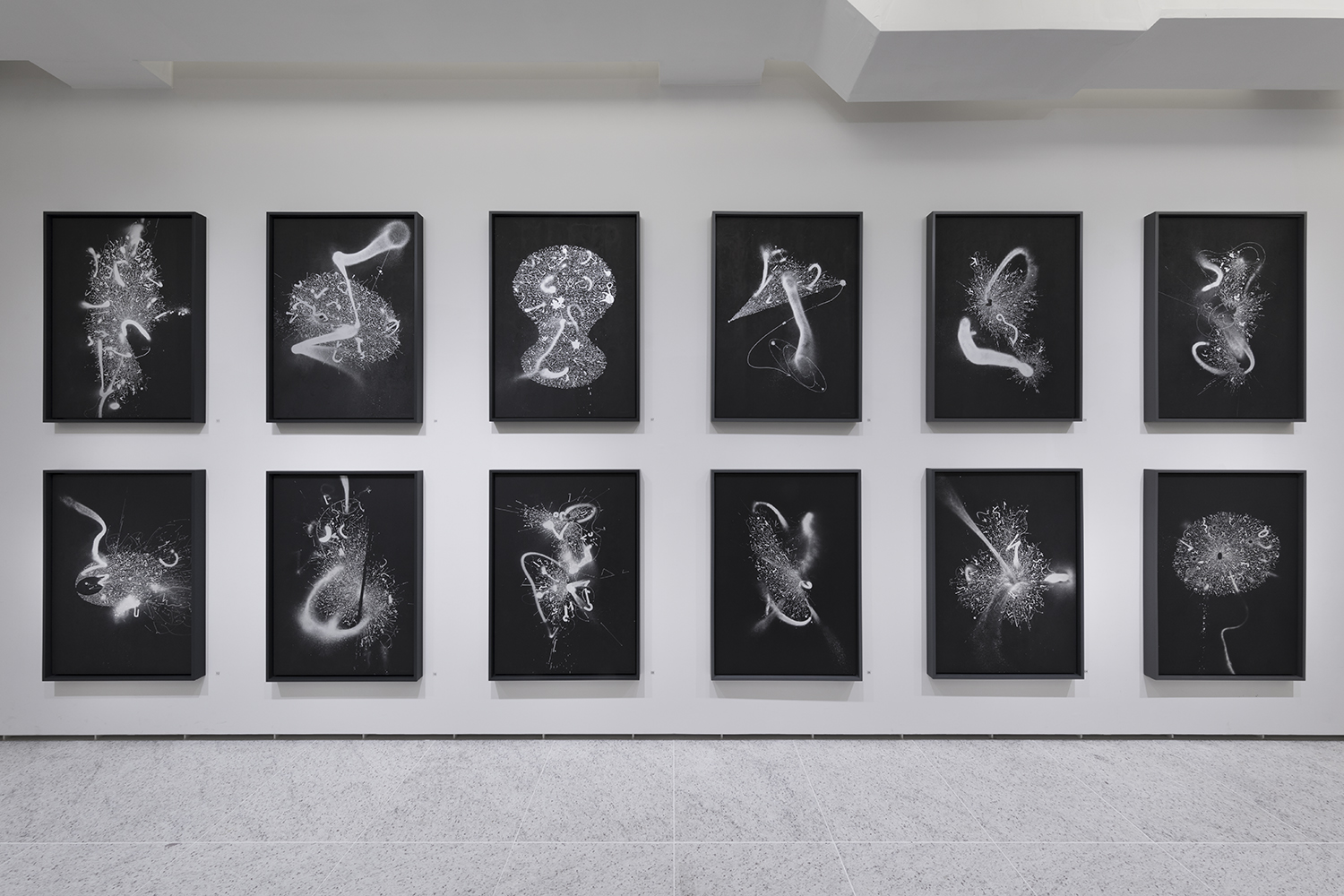 silver ink, Chinese ink on paper mounted on aluminum, h995 x w695mm each, installation view at Arts Maebashi (Gunma, Japan) 2017, photo by Ooki Jingu