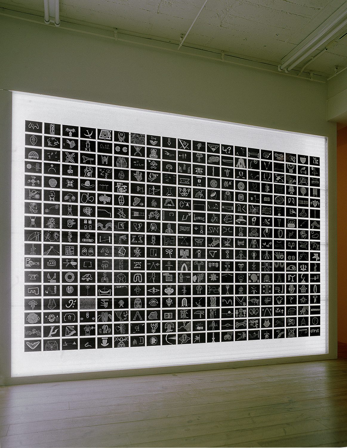 The title “GENGA” refers to a word play between the words “GENGO” (language) and “GINGA” (galaxy), with “GENGA” also meaning primal or original pictures. In this work, Hiraku Suzuki draws his own lexicon of signs and hieroglyphs which echo as much his own phenomenology of place (cities, landscapes, travels) as (pre-)historical archetypes and trans-cultural psychological subconscious. Hence drawing becomes a kind of “alternative archeology”.