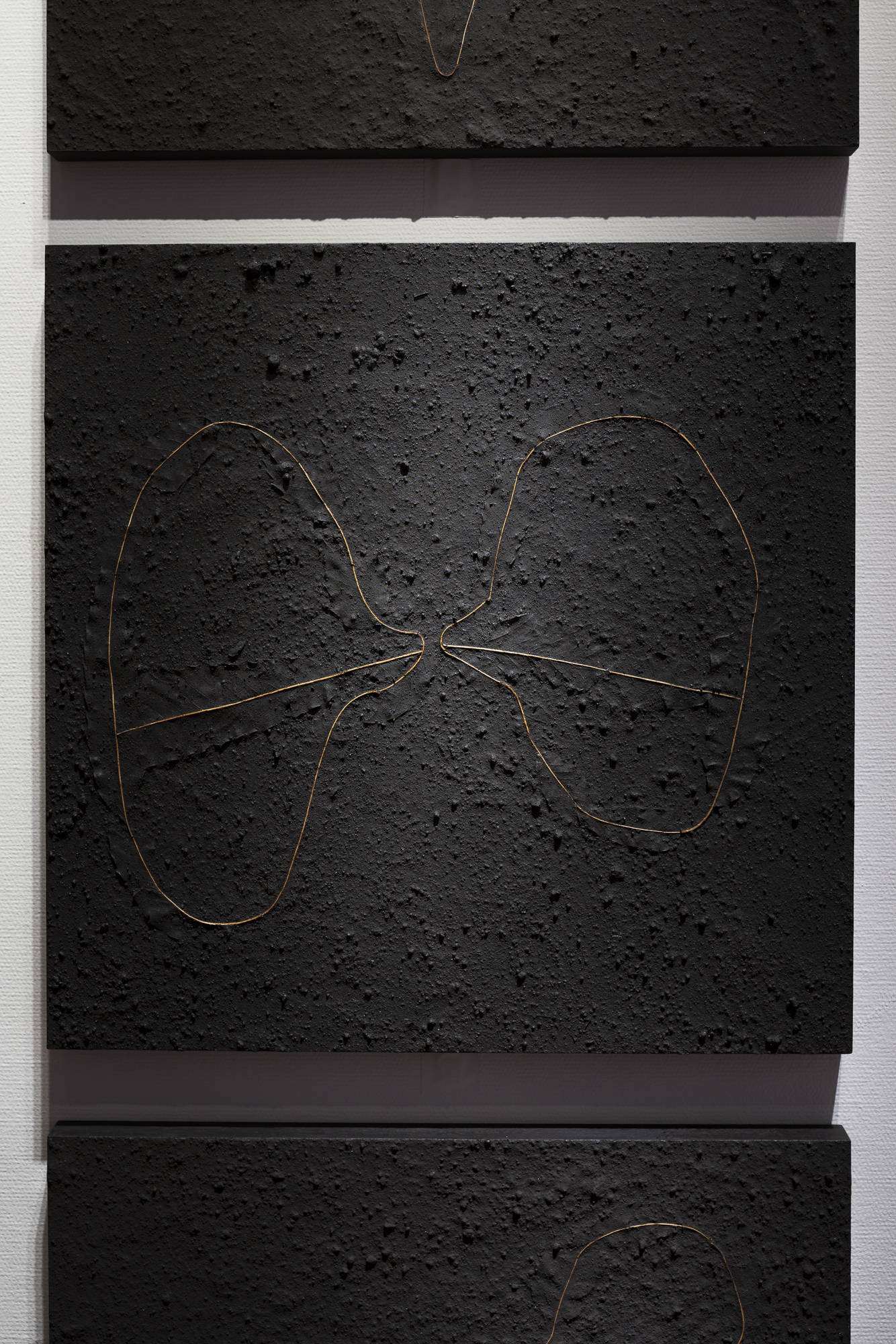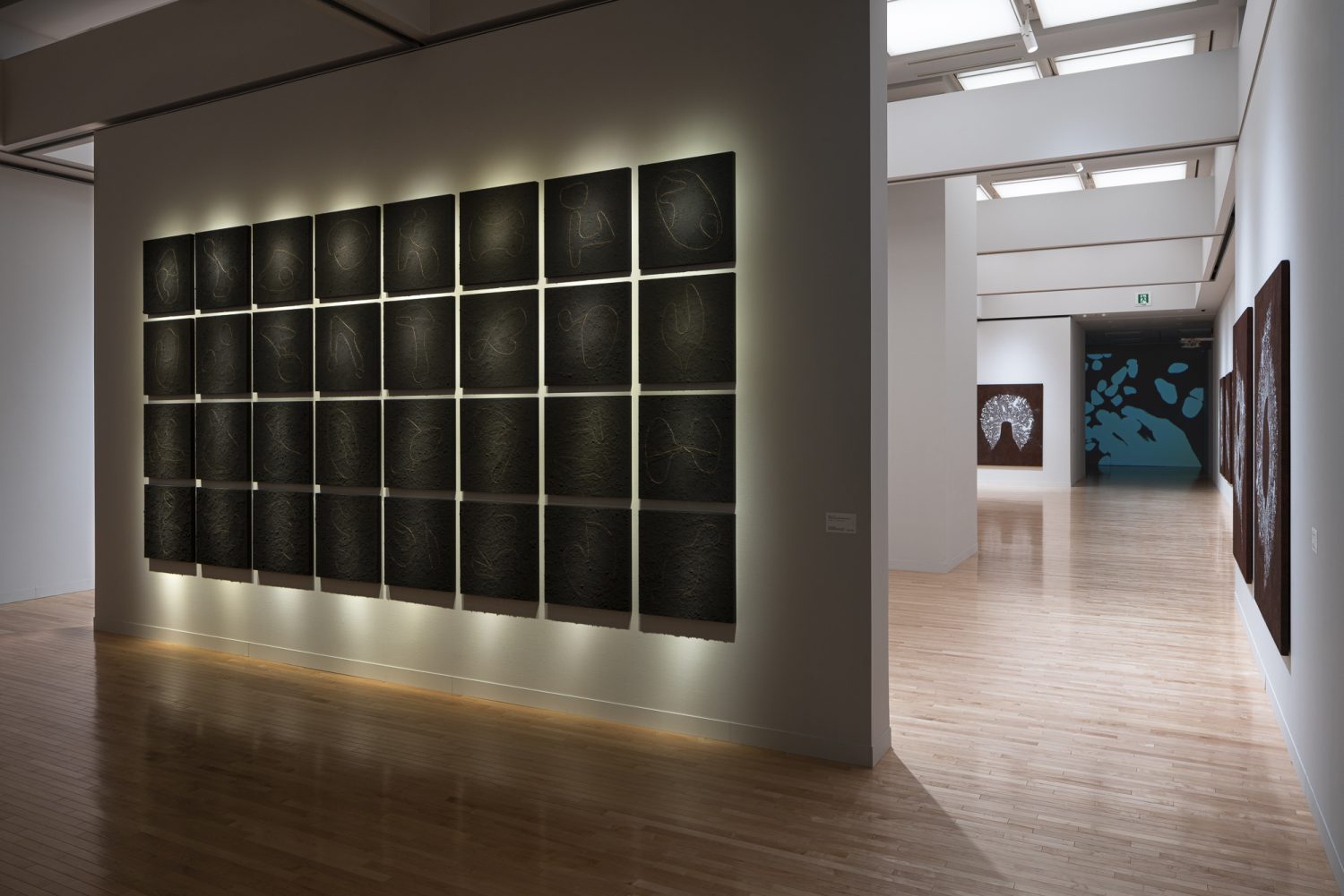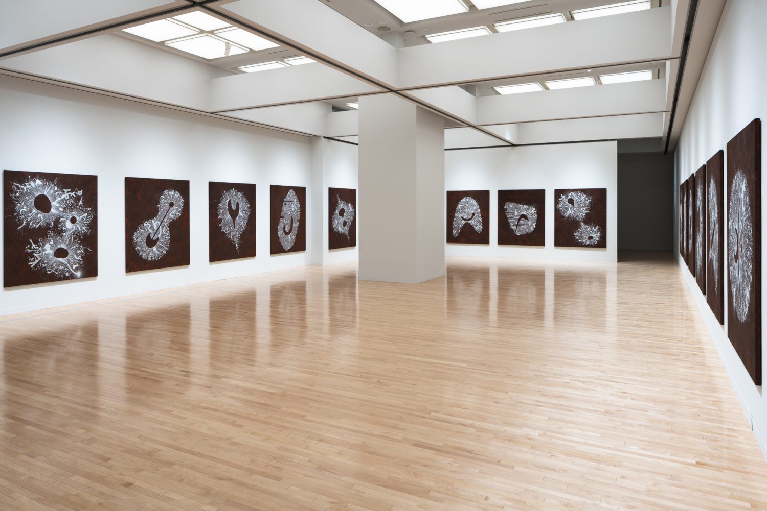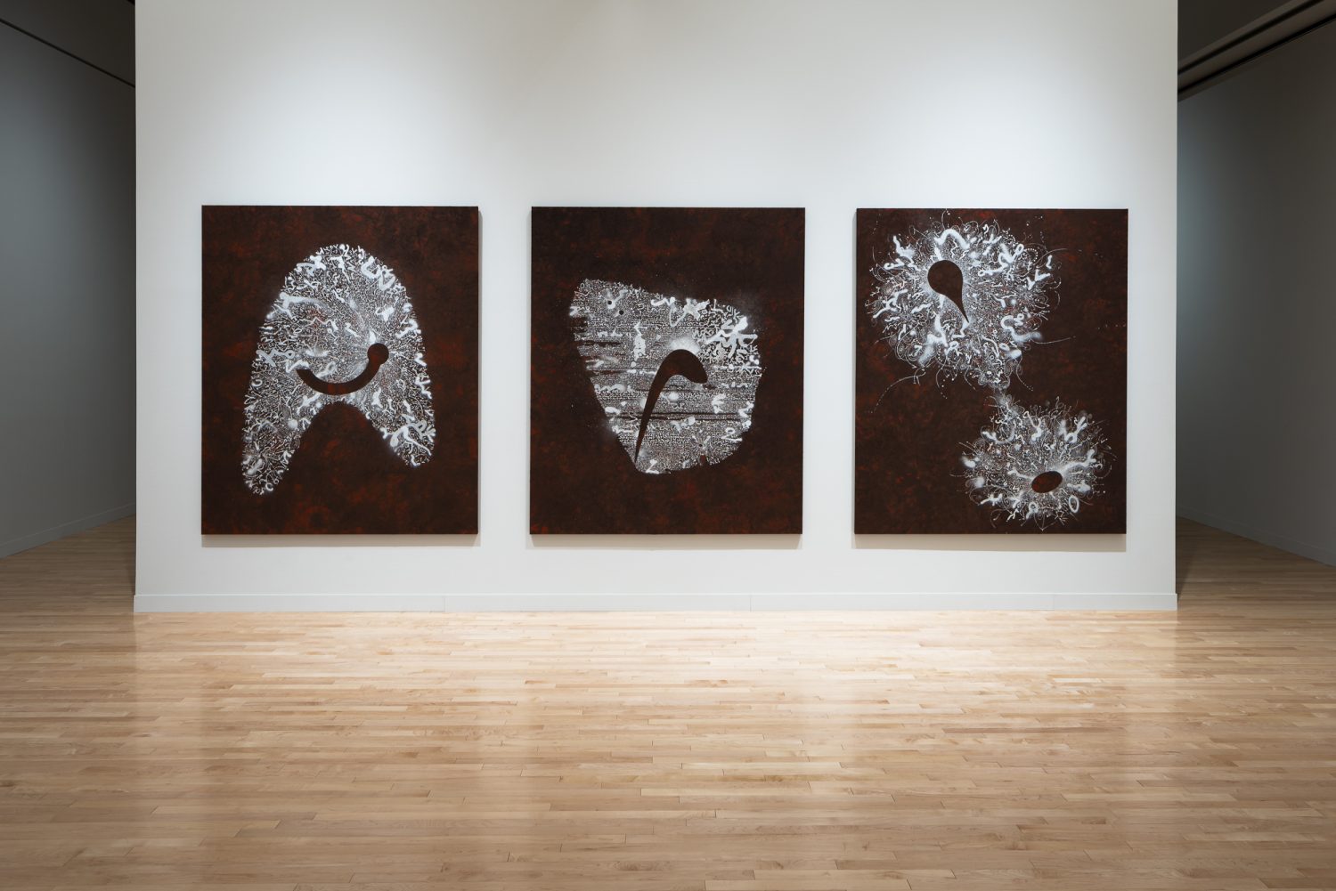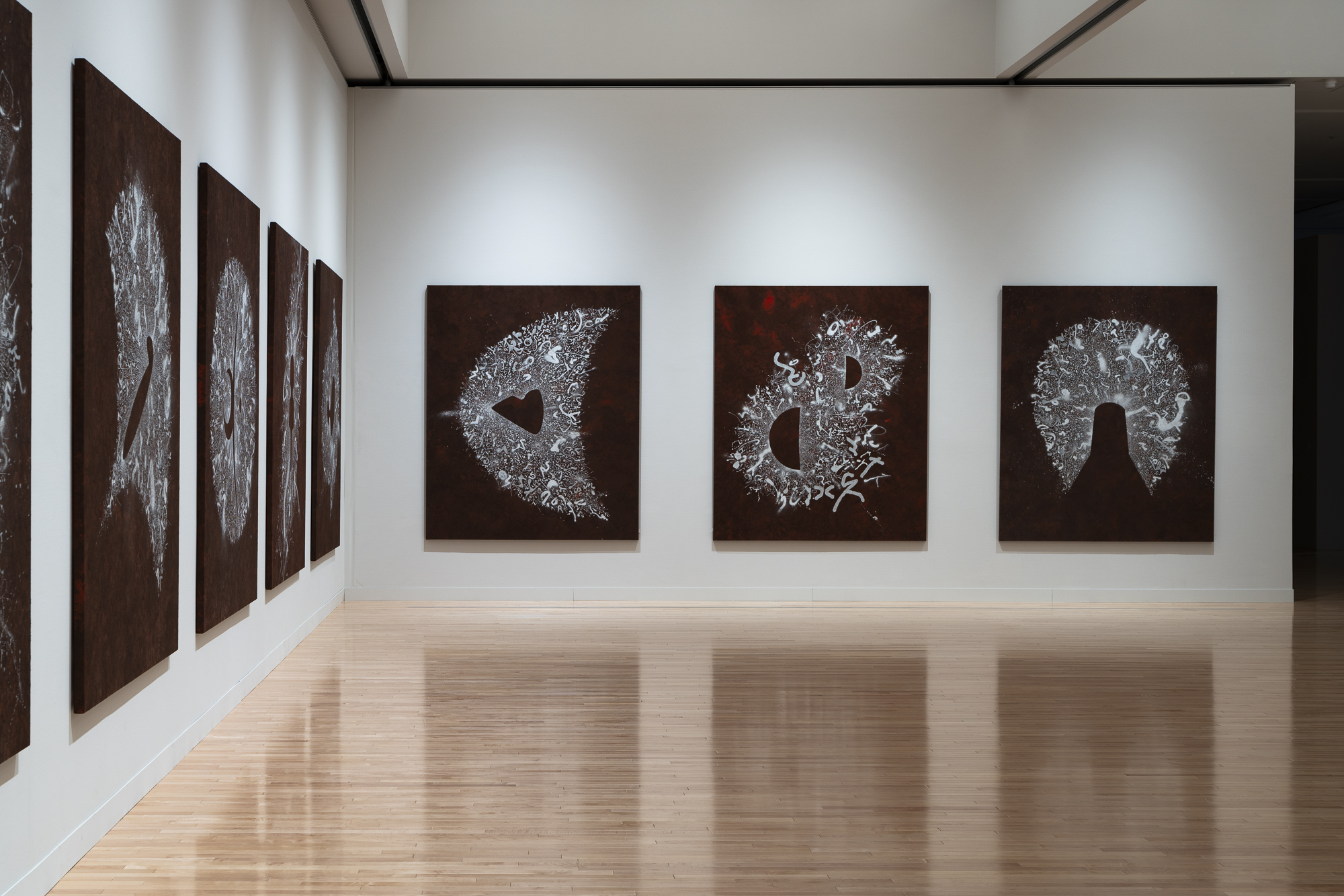 会場: 東京都現代美術館 会期: 2019年11月16日 –2020年2月16日 展示作品: Interexcavation #1-#22(2019) / bacteria sign #36-#40, #45-#71(2018-2019) / 輪郭線を思い出す(2019) 写真: 森田兼次
