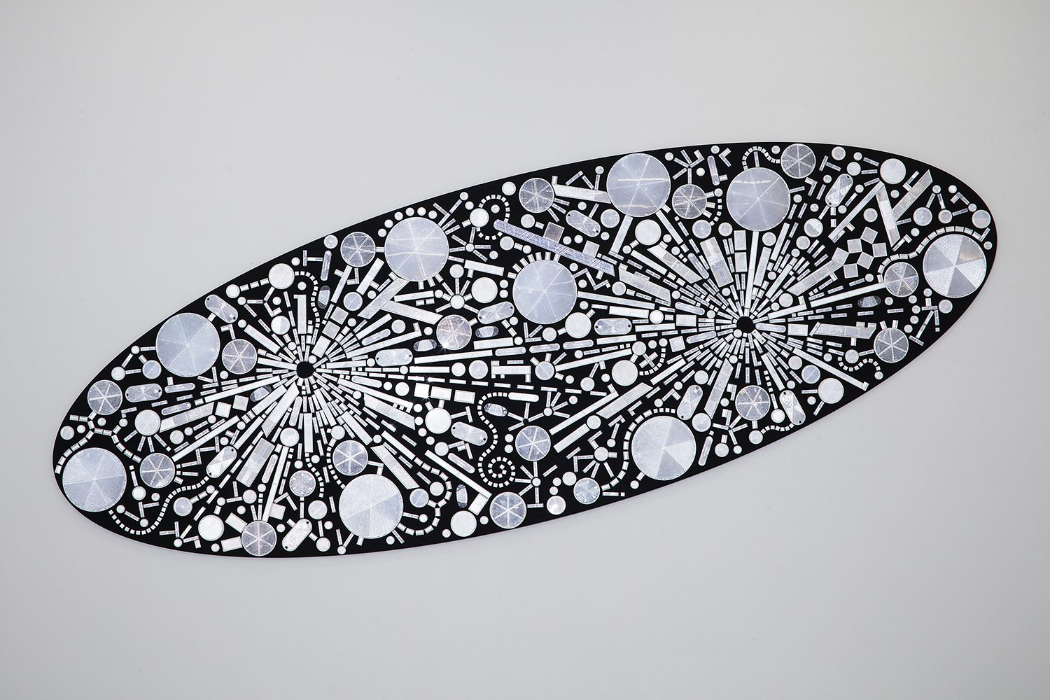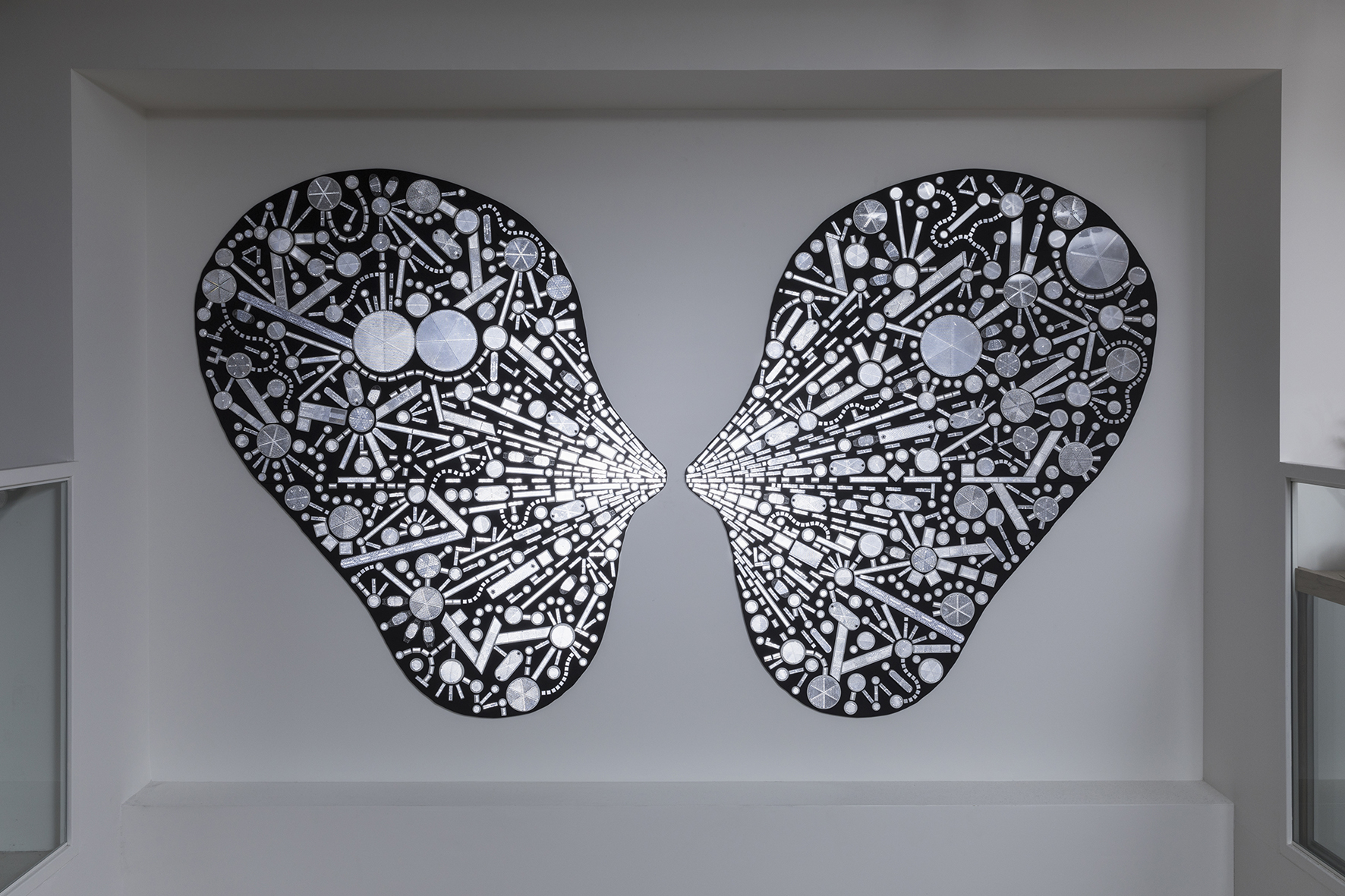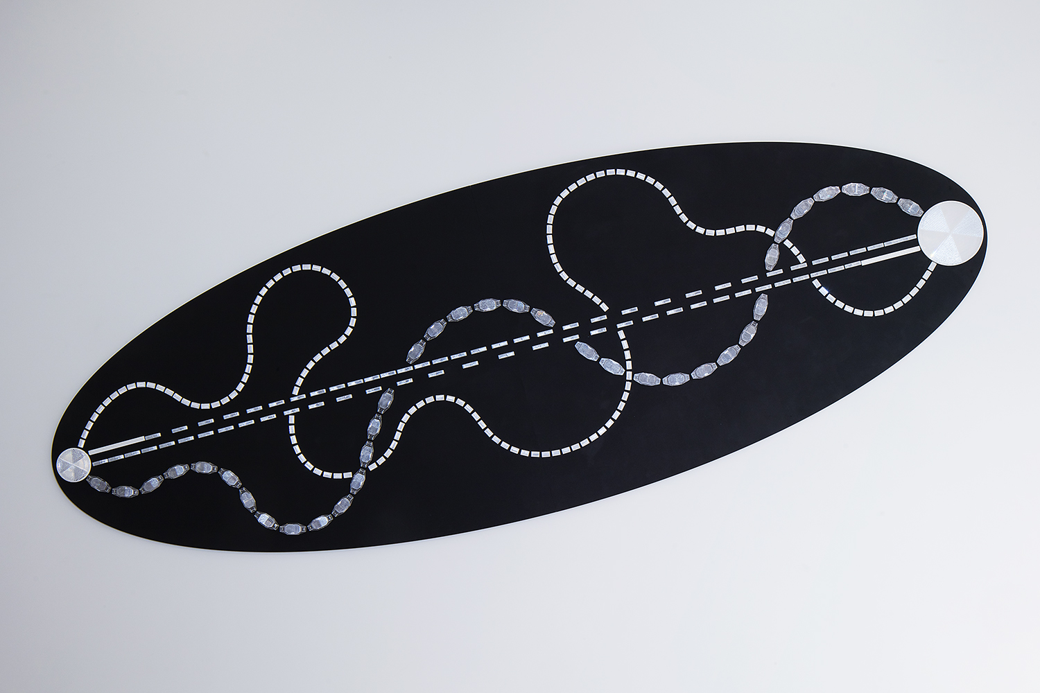 路上の交通標識などに用いられる反射板を素材として用いたドローイング作品のシリーズ。日常にありふれたシグナルの断片を再接続することで描かれた新たな記号は光を反射し、光線が鑑賞者の視線と重なった時、網膜に残像を刻む。