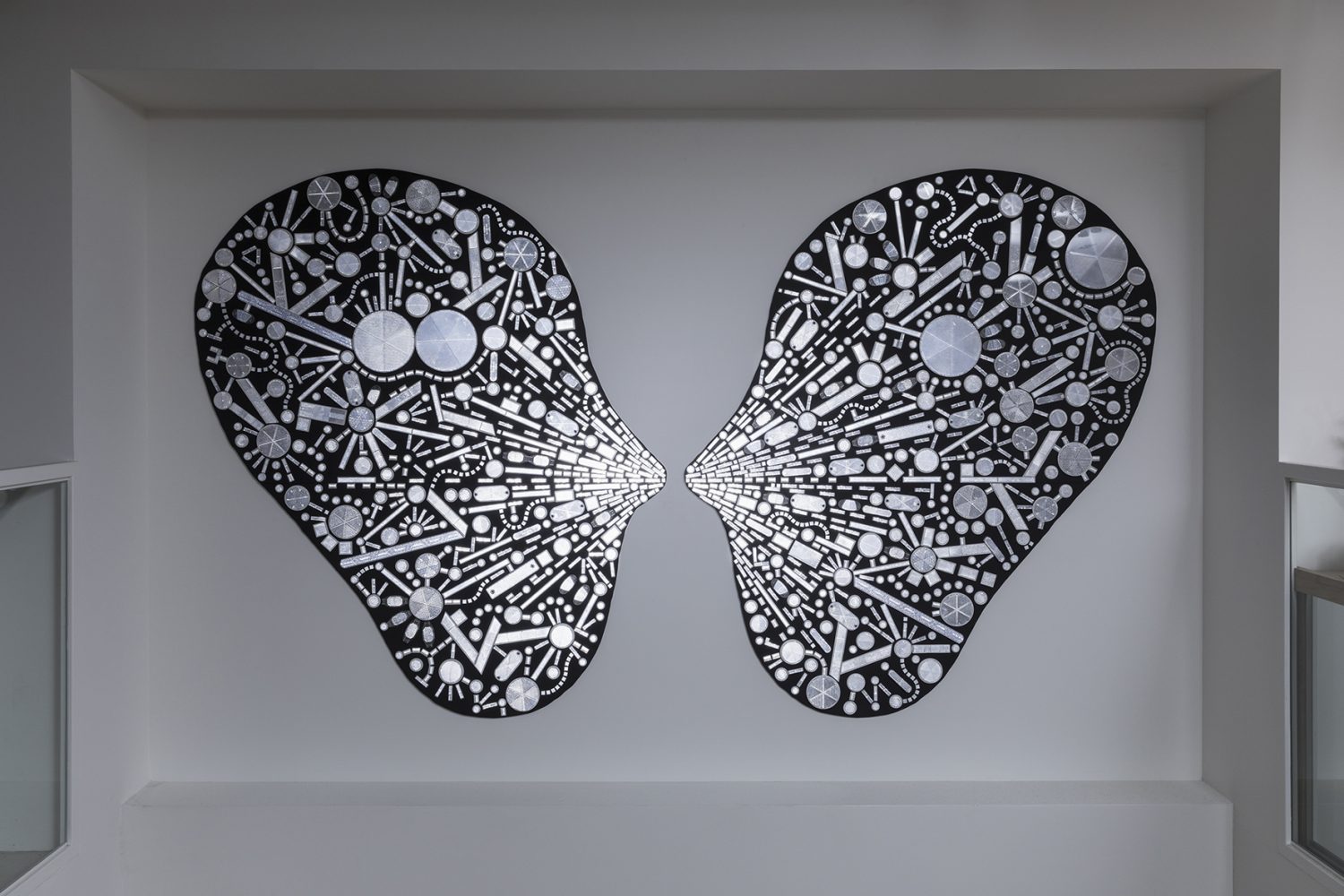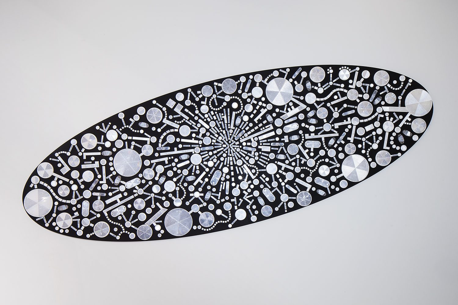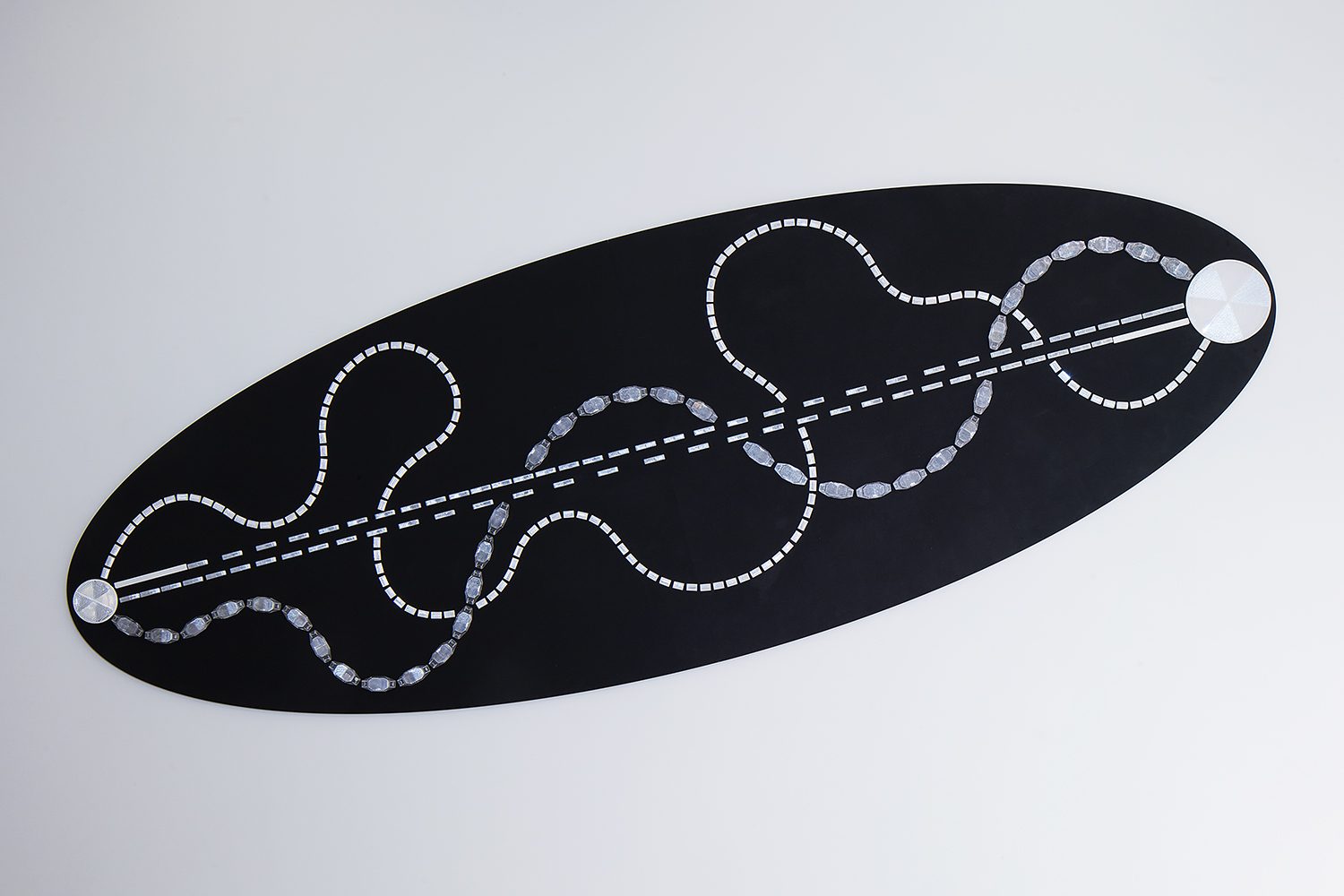 路上の交通標識などに用いられる反射板を素材として用いたドローイング作品のシリーズ。日常にありふれたシグナルの断片を再接続することで描かれた新たな記号は光を反射し、光線が鑑賞者の視線と重なった時、網膜に残像を刻む。