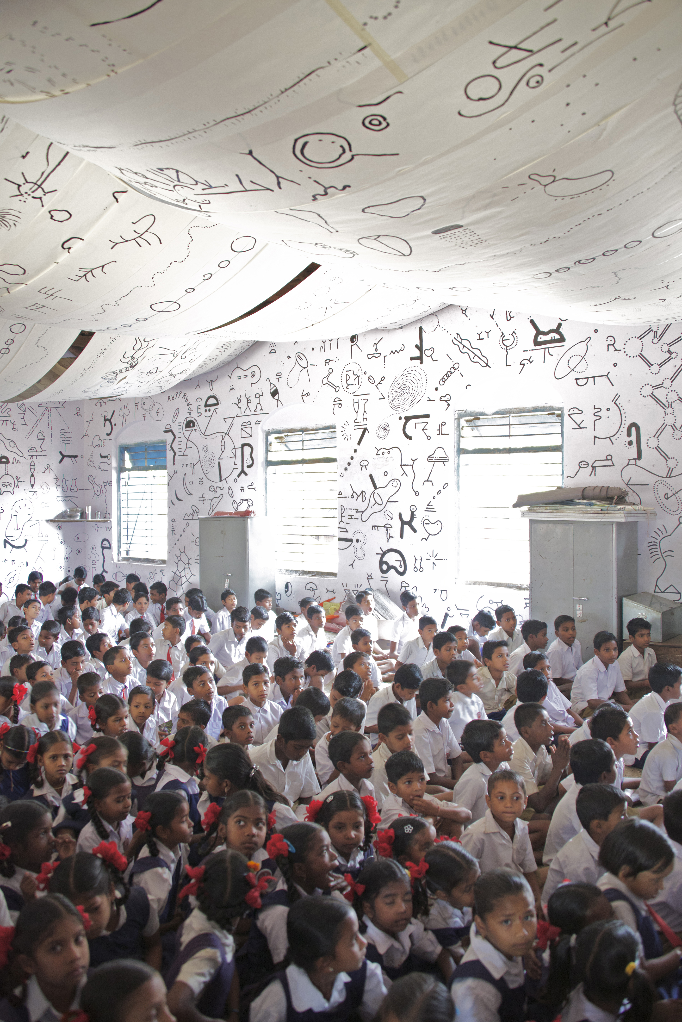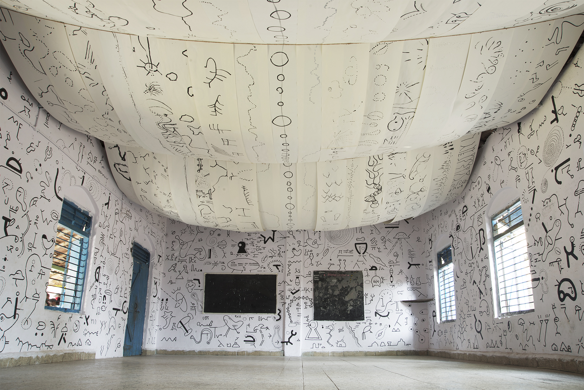 会場: Jivan Sikshan Mandir Ganjad (ダハヌ、インド), 会期: 2013年2月18日 – 2月20日, 展示作品: 文字の部屋, 写真: 高嶋敏展