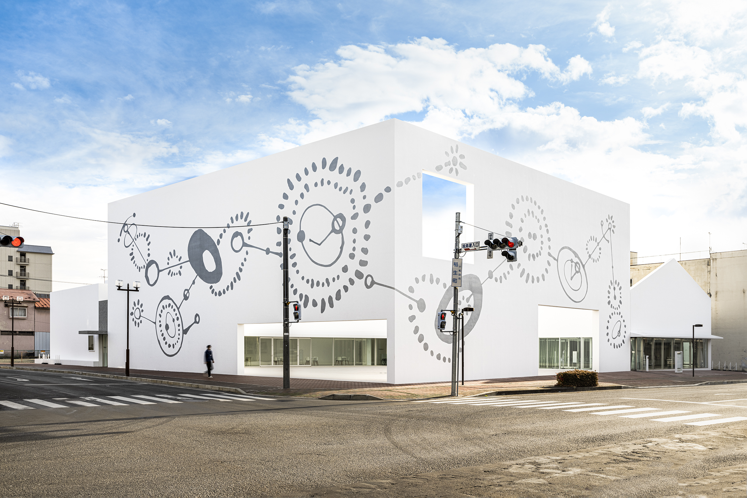 壁にシルバー塗料, h1250cm x w5466cm, 十和田市地域交流センター(青森)での常設壁画, 写真: 小山田邦哉