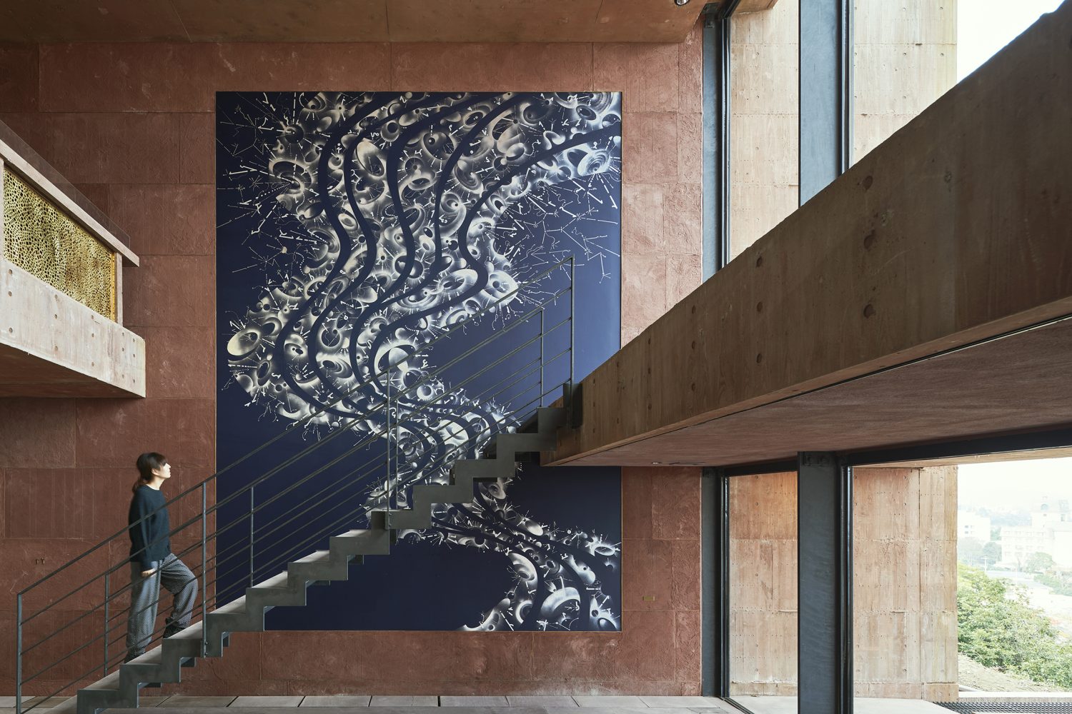 壁にマーカー, Jivan Sikshan Mandir Ganjad (ダハヌ、インド) での展示風景, 写真: 高嶋敏展