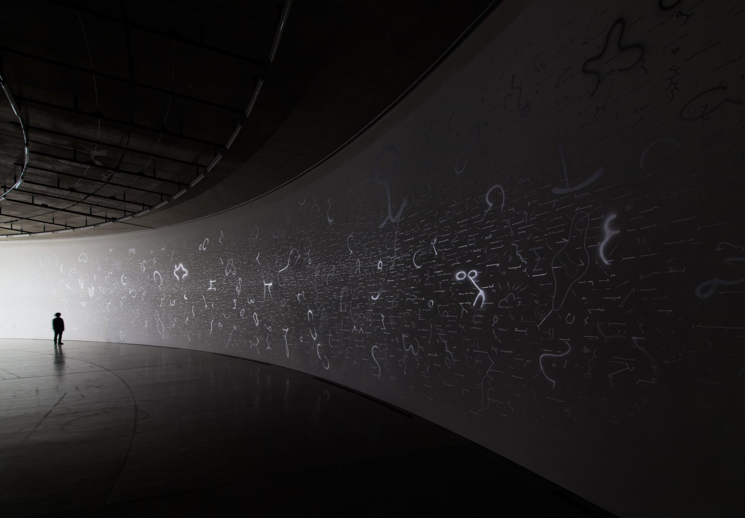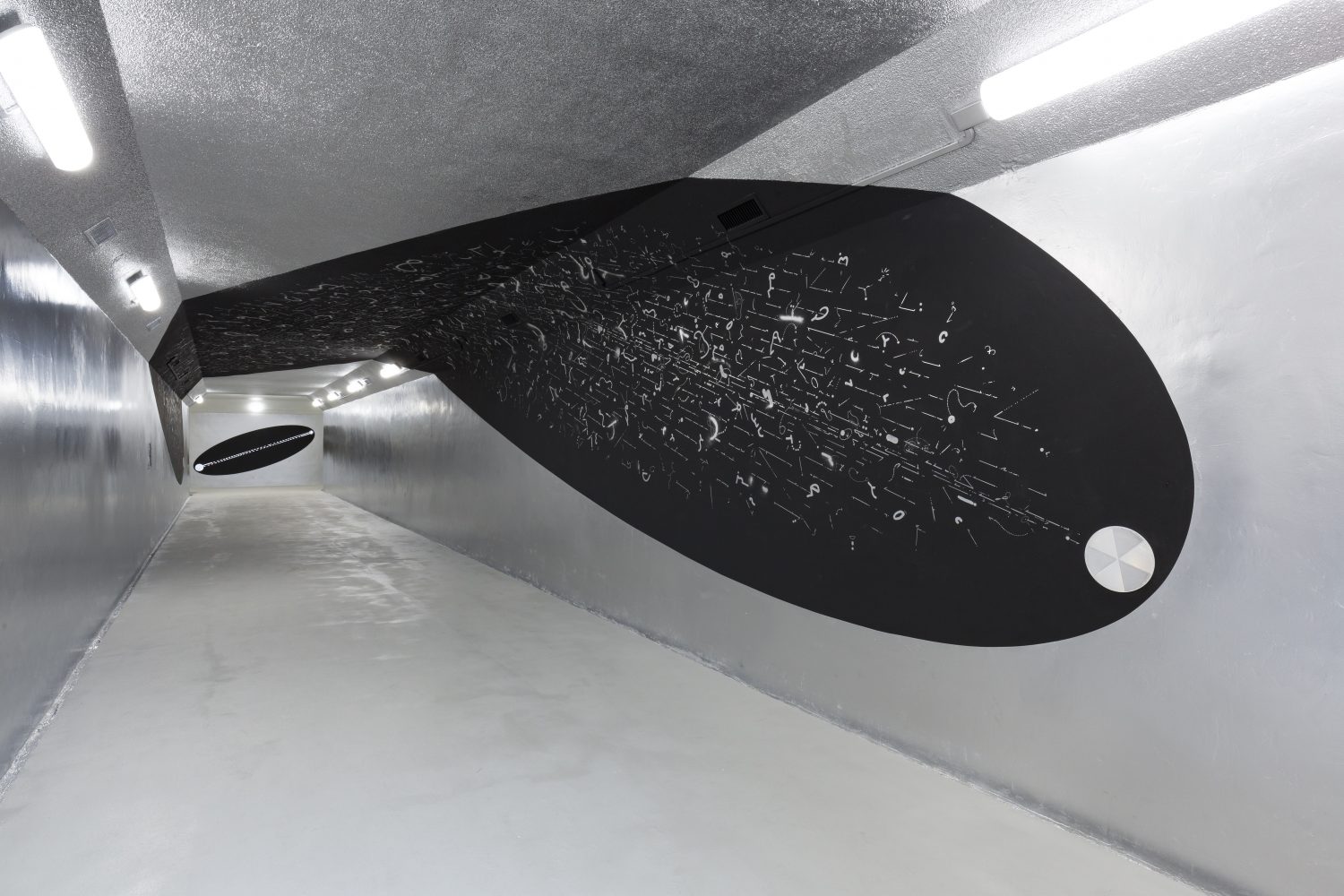 壁にシルバースプレー、シルバーインク, h600cm x w5500cm, 国際芸術センター青森での展示風景, 写真: 小山田邦哉