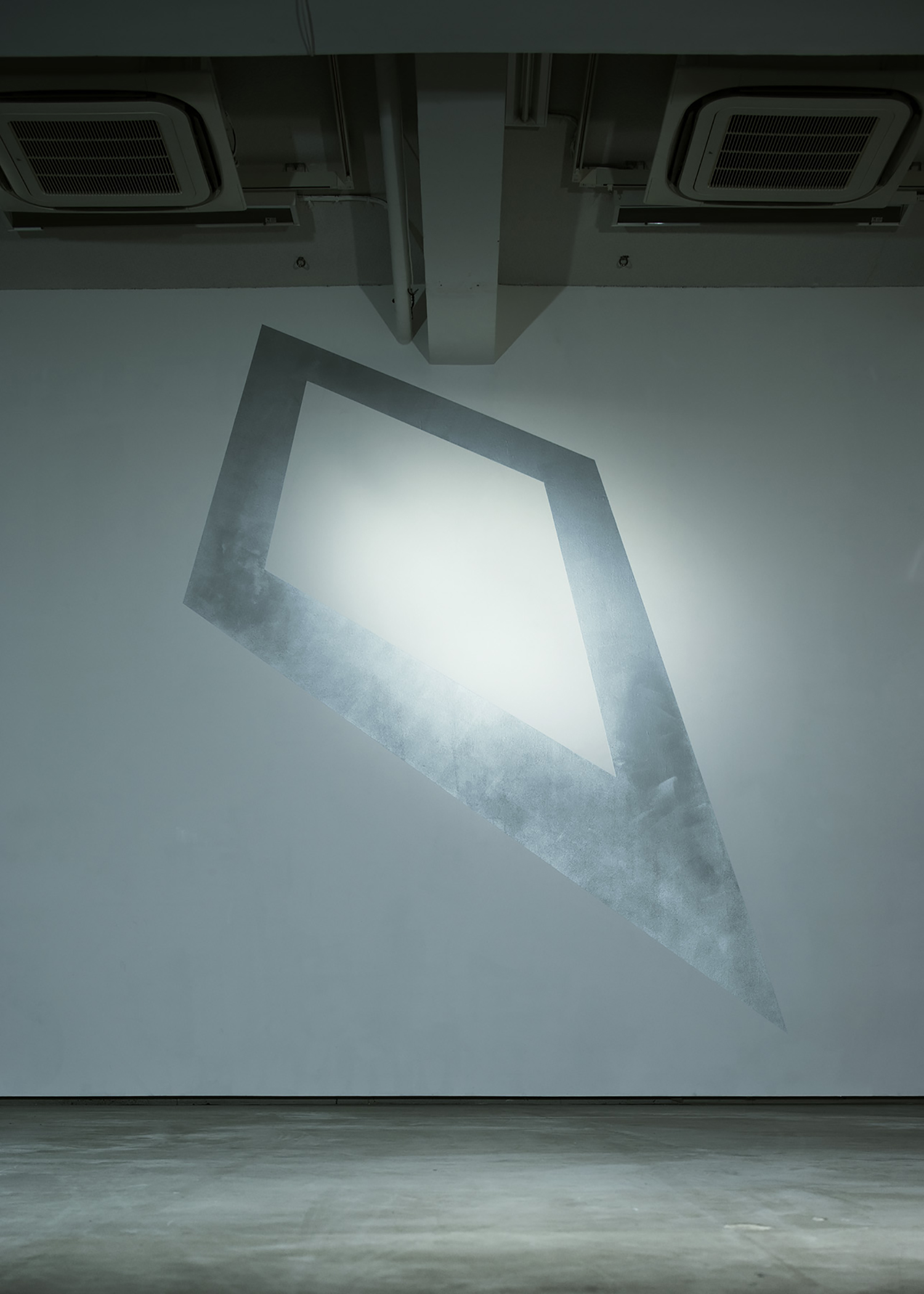 壁にシルバースプレーペイント, island MEDIUM (東京) での展示風景, 写真: 木奥恵三