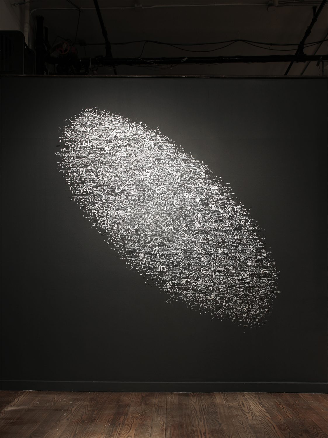 壁にシルバーマーカー, h305cm x w320cm, Location One (ニューヨーク) での展示風景